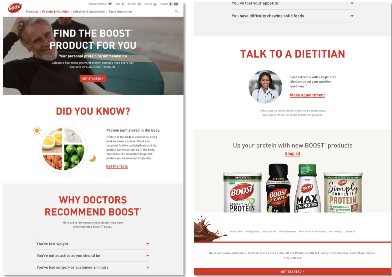 Nestlé BOOST wanted to educate customers about how much protein they need each day. At Publicis.Sapient, I helped create a personalized digital hub focused on protein and nutrition, featuring an interactive quiz that calculates their daily protein needs and then recommends the right BOOST product for them.
